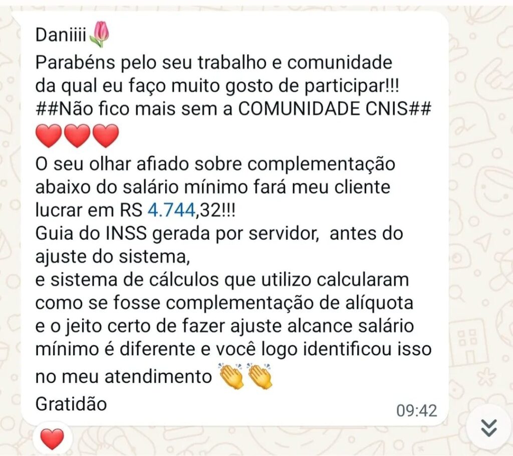 A comunidade é focada em leitura real de CNIS, análise de casos, indicadores, carência, contribuições em atraso e abacaxis do dia a dia.